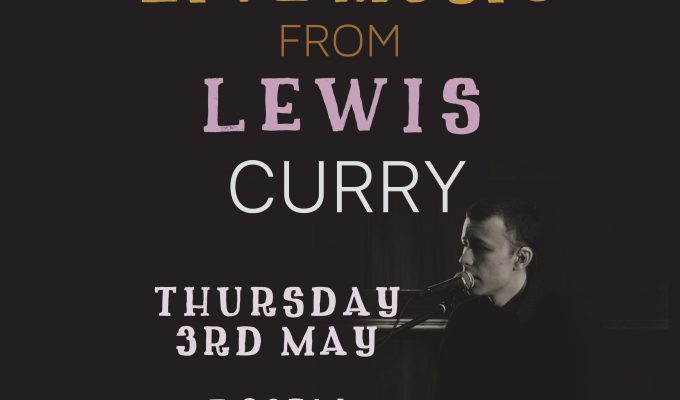 On Thursday 3rd of May , we have the amazing Lewis Curry performing LIVE from 7:30pm!