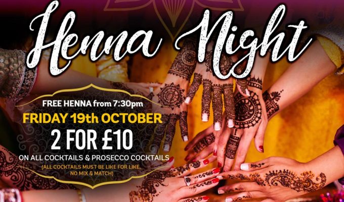 Enjoy complimentary Henna from our fantastic Henna Artists from 7:30pm – until late.